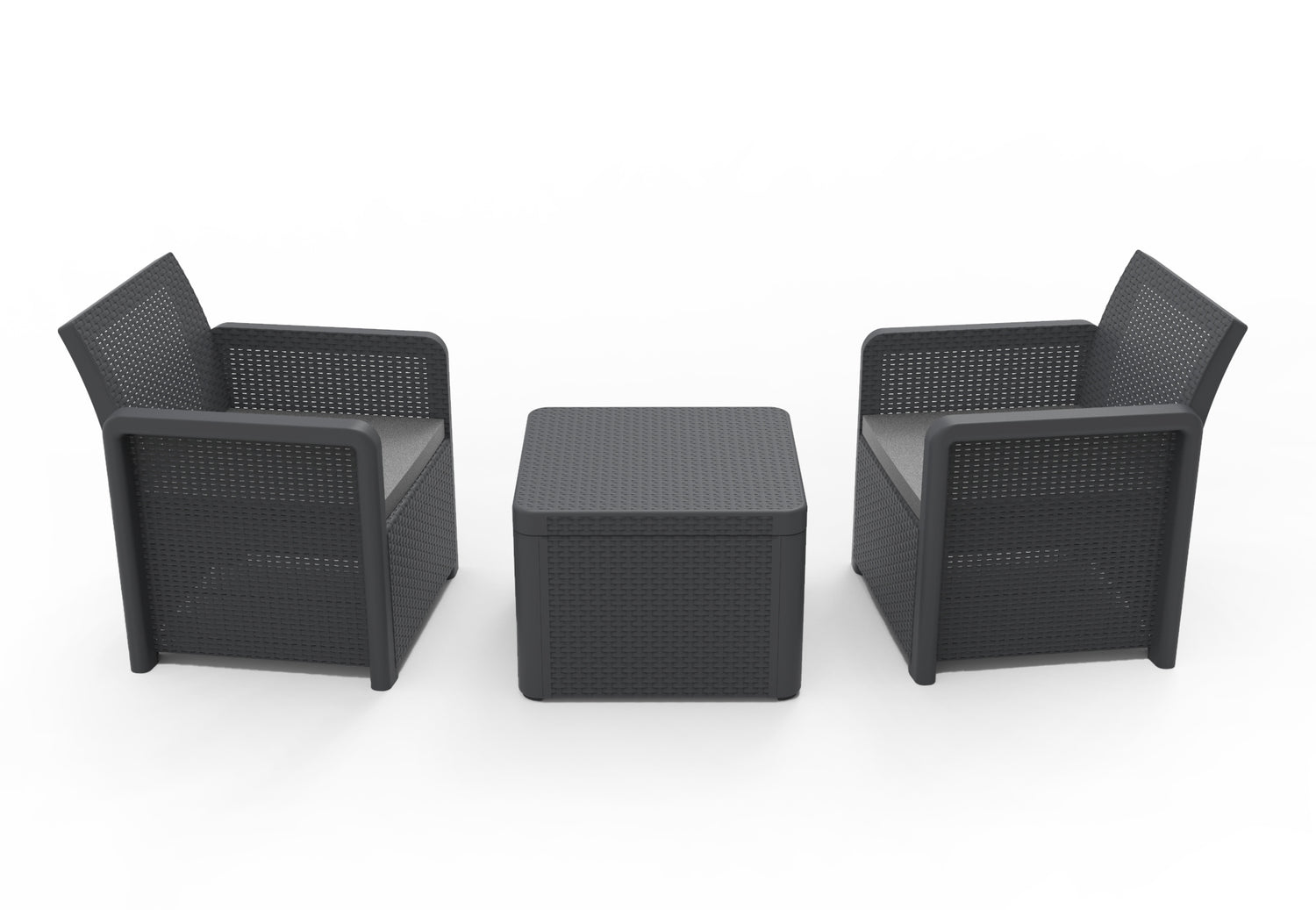 Nassau Tête-à-Tête Garden Set with Storage | Recycled Plastic Chairs and Table - Graphite is backordered and will ship as soon as it is back in stock.
